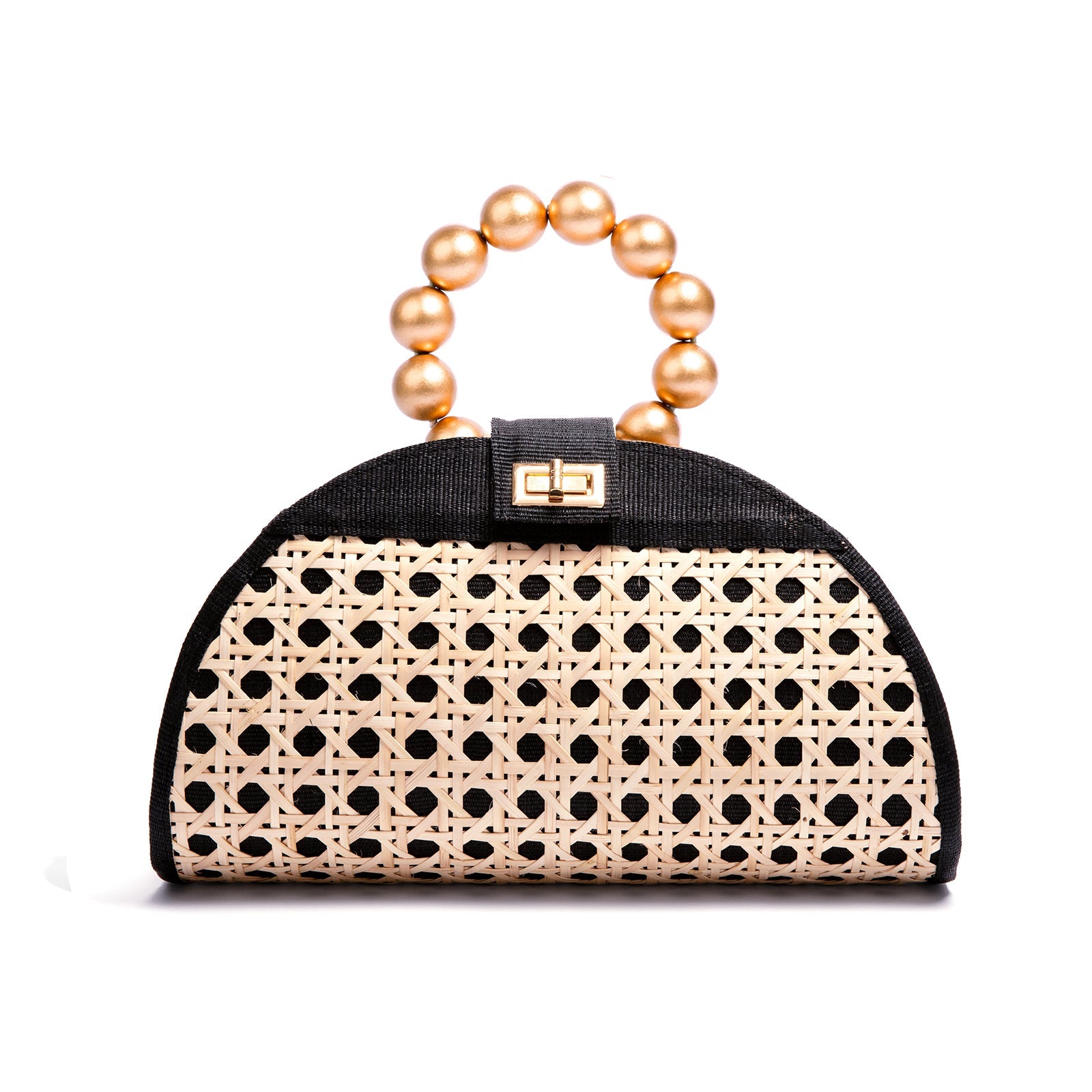 THE ISABELLA Black & Gold Rattan Woven Handbag