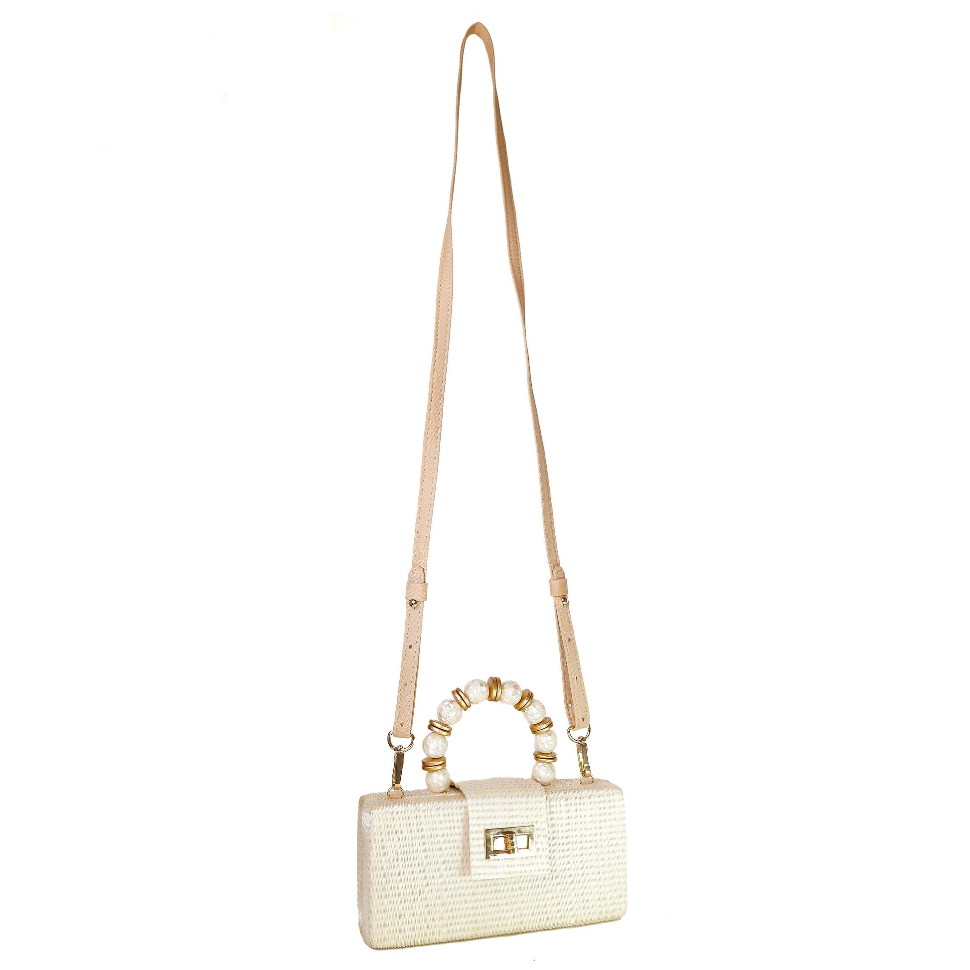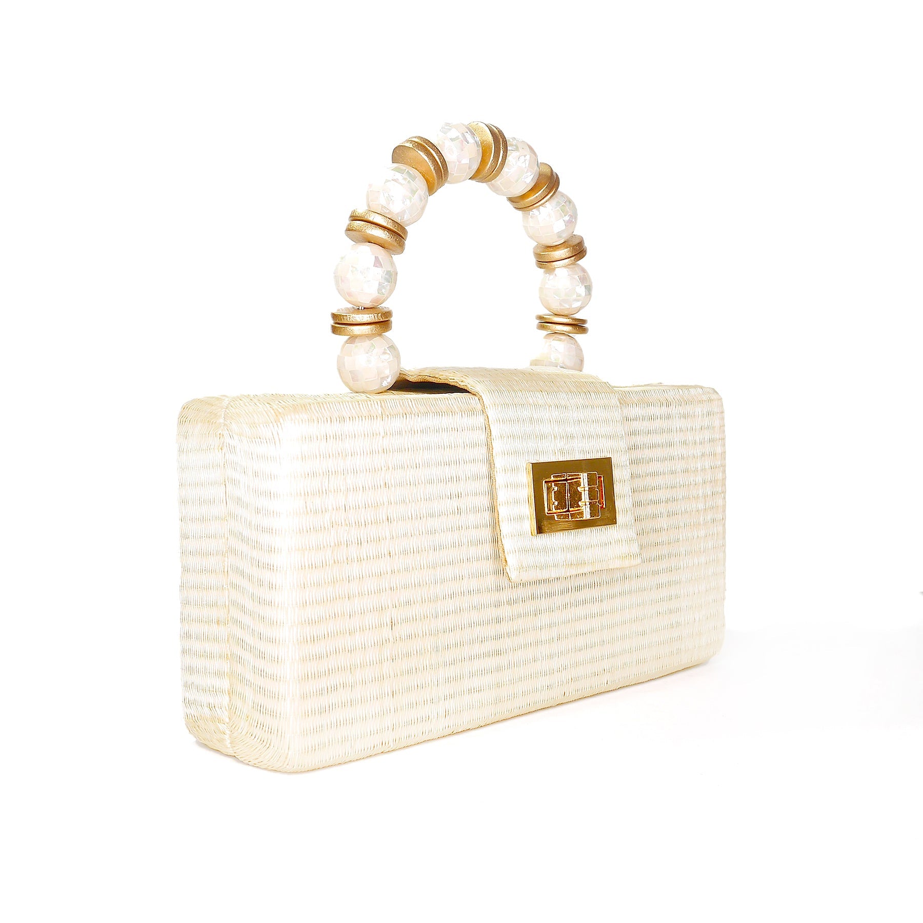 THE SERENA Cream Clutch with Shell Inlay Bead Handle