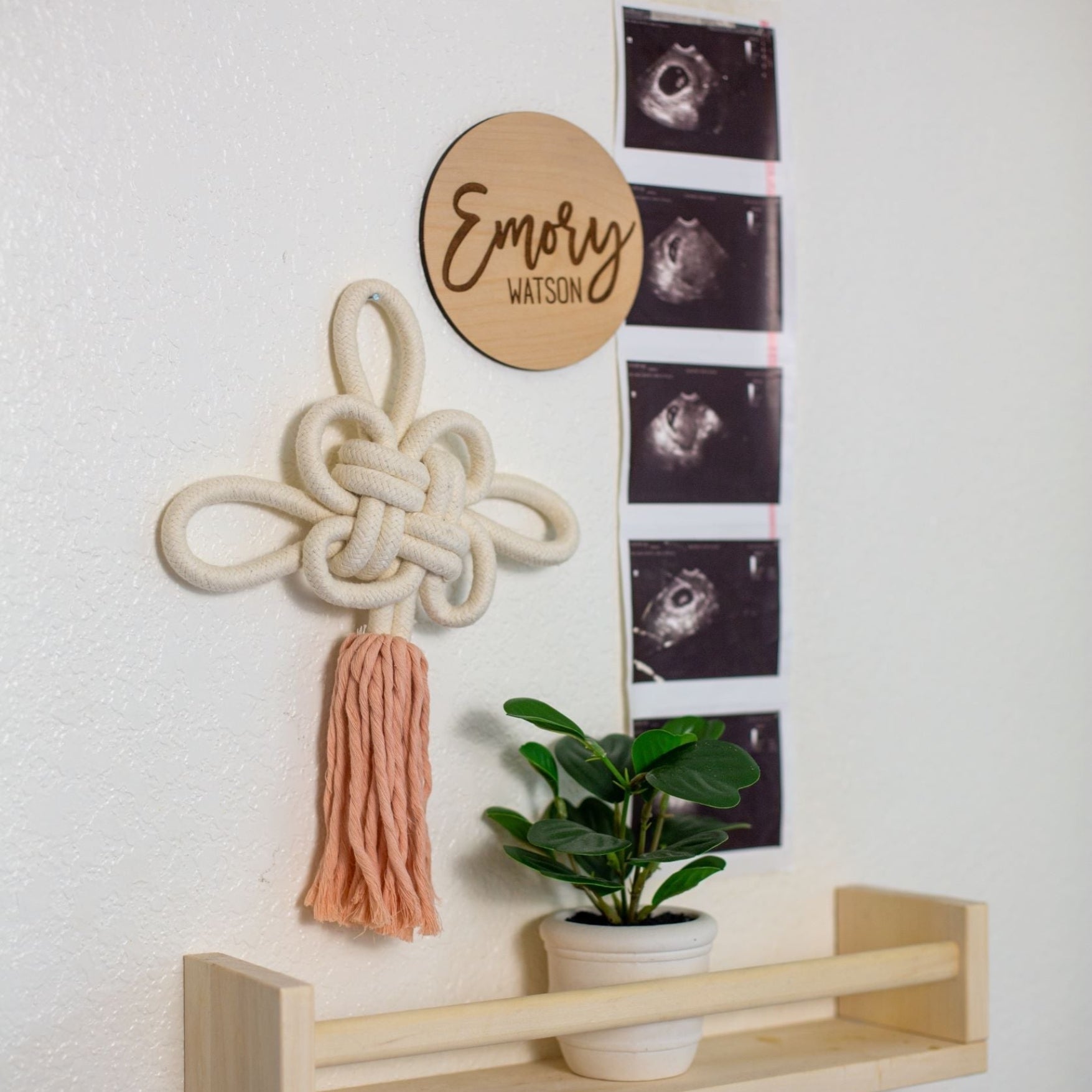 Crafted from fresh cotton rope, this handmade, fair trade statement piece symbolizes the beauty of joining hearts with those around us and choosing solidarity over division. It's colorful tassel adds a unique and bohemian touch and its neutral color easily complements other furniture and décor. We love it as nursery décor or as part of a gallery wall display. Materials: Cotton Rope Size: The knot measures 8" x 6.5", and the tassel measures 5" long