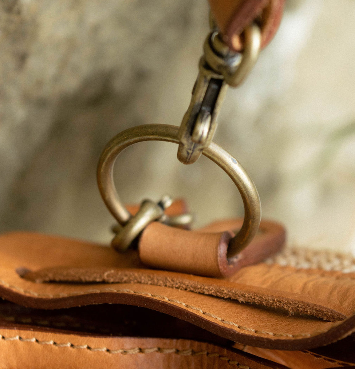 Ideal for any adventure and perfect for days spent on a plane or the beach, The Transito Backpack is a catch-all that’s up for everything you are. It has adjustable leather straps and a cinching leather top to secure your goods but still allow you convenient access. Handmade by skilled artisans and woven from an all-natural, plant-dyed cactus fiber and high-quality, vegetable-tanned leather. Style Notes Adjustable, removable straps Size: H 12" x L 9.5" x W 9" Large enough to hold all the essentials: phone, keys, wallet, water bottle, etc. No inner lining or pocket The Process Every Minga bag has been ethically sourced for a mutually agreed upon, fairtrade price and provides work to our artisan partners, a collaborative group of 18 women living in a remote region of Ecuador. Learn more here. Our bags are handmade and one-of-a-kind. This means that no two are exactly alike and almost all contain irregularities from size to styles to color. Please allow for slight imperfections as this is what adds to the unique character of each bag. Due to the leather's natural finish each hide will keep its distinctive features, such as veins and pores. Please allow the leather time to naturally wear and soften over time.