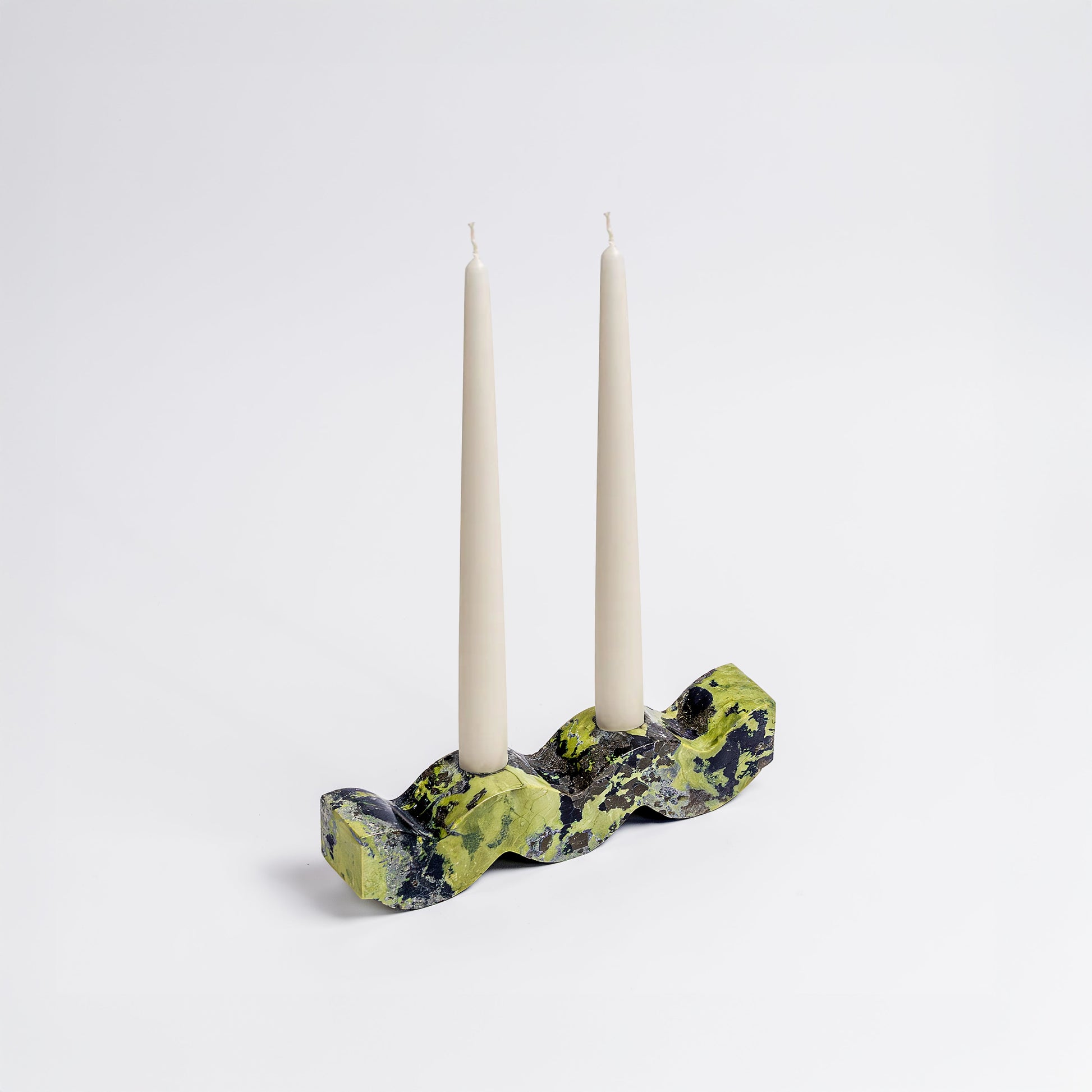 Light with purpose: this green serpentine candelabra blends artistry, utility, and organic style.
