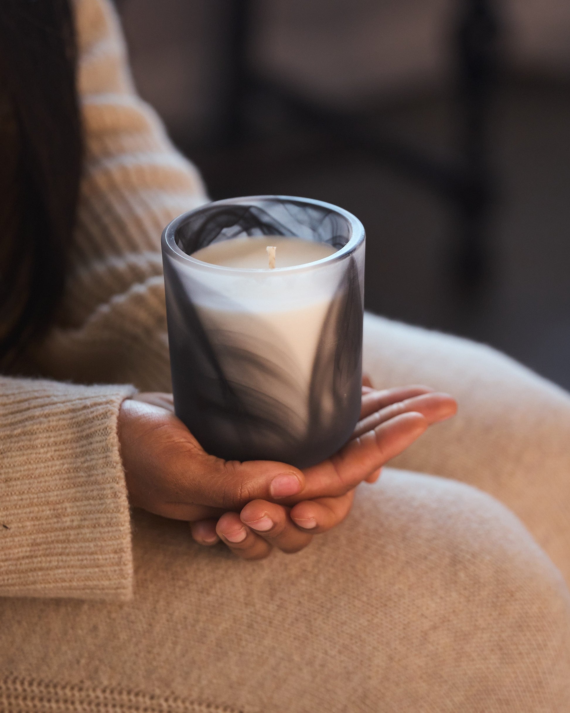 A calming from the knowledge it is cold somewhere... A limited swirl jar edition of postmodernform's bestselling holiday fragrance blend that evokes the unique coolness of a fresh winter snow in a pine forest. Mint and eucalyptus top notes combine with a pine and subtle smoke mid note, on a cypress and tonka bean base. The perfect pine holiday scent to usher in one's winter era. scent notes: woodsy - earthy - clean 10oz | 283g 60+ hour burn time Candle size: 3.5in diameter, 4in tall Candles from postmodernform are always 100% soy wax, 100% cotton wicks, always cruelty-free. Small-batch, handpoured in San Francisco or Raleigh, USA. FREE SHIPPING on all orders $50+